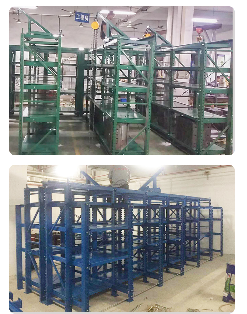 對于模具行業來說,最合適的就是模具貨架,簡稱:模具架??梢愿鶕浖艿某休d能力來區分輕型模具貨架和重型模具貨架,貨架頂部可配置移動葫蘆車,方便模具起吊。模具貨架還可以在貨位式貨架的橫梁上做抽屜盤,成本跟節約,結構更穩固。