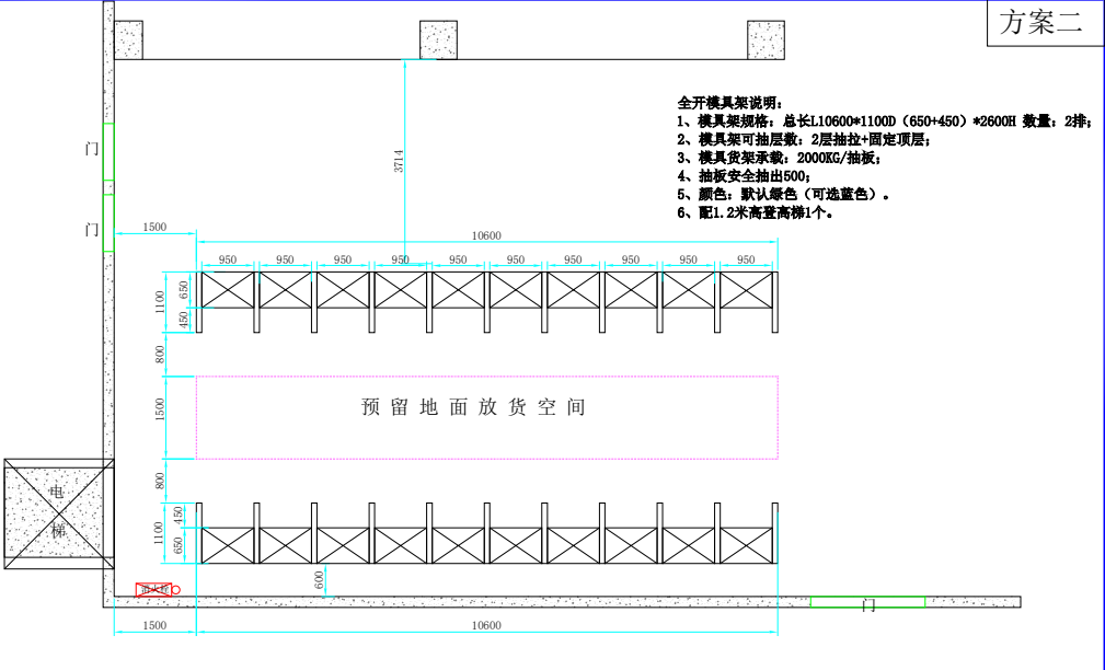以上案例是最近一個客戶找到我,讓去看一下他們場地模具幫忙出個貨架方案,由于客戶的模具是比較大型,重量也比一般的模具要重,我們這邊當時沒給出方案,和客戶約了時間去場地實地考察,工程考察完根據客戶場地模具大小的實際情況給客戶出了兩個方案,最后客戶選擇了方案2